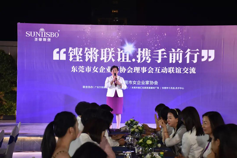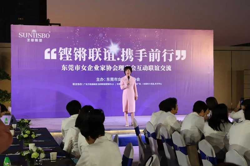 接下来,东莞市女企业家协会理事会会长叶小红女士上台发言,她表示非常感谢leyu.乐鱼集团集团举办此次联谊交流会,同时,对我们的产品和企业文化给出了很高的评价。她号召东莞市女企业家协会以后要更多的举办此类交流联谊活动,以此增进会员企业之间的联系和了解,为未来进一步交流发展开创新局面!她希望我们能携手同行,强强联手,共赢未来,共创新辉煌!